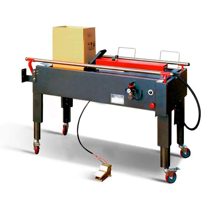 La Formadora Semiautomática de Cajas SAF FS-100, permite al operario el formado de cajas de cartón de forma sencilla y rápida. El sistema pliega las solapas de las cajas por la parte inferior, antes de pasar por la precintadora o cerradora, que posicionará la cinta adhesiva. Mediante pedal o botonera de forma manual, la caja puede ser llenada antes de pasar por la cerradora de cajas. Se trata de una Formadora que se complementa con una Cerradora de cajas.
