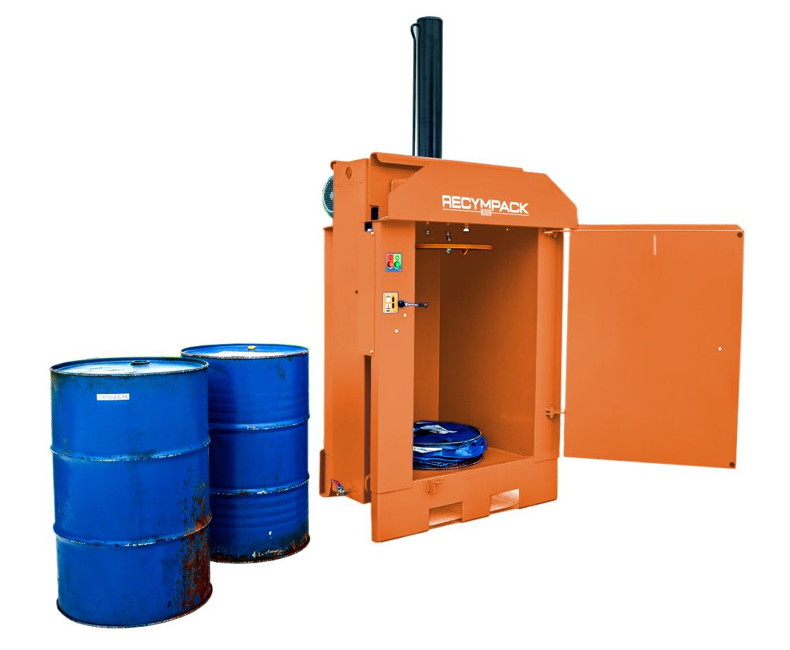 La compactadora para Bidones Metálicos de 200 Litros, S-240T de Recympack, puede reducir el volumen de residuos hasta un 80%. Al poder apilar los bidones compactados, almacenarlos supone una reducción muy importante en espacio y en su posterior transporte. Se trata de una Prensa para Bidones metálicos muy eficaz con una relación excelente precio y calidad.